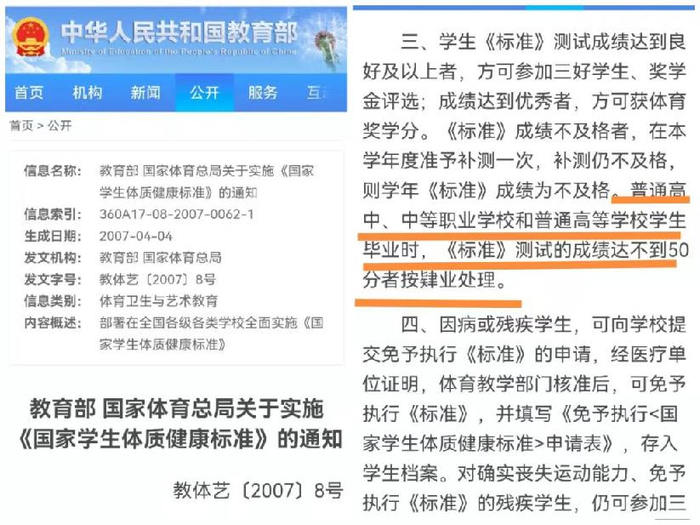 答:大学体测与毕业挂钩的规定并非云南大学首创,云大是在严格执行教育部要求。2007年,类似规定就出现在教育部文件中。