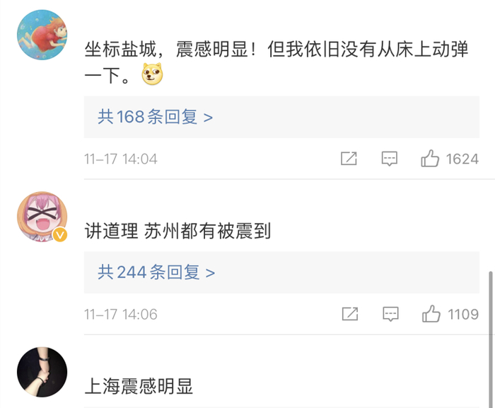 来源:澎湃新闻 薛晶 梁嫣佳、微信公众号“中国地震台网”、网友评论等