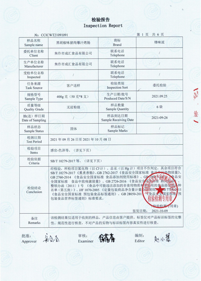 并且,每批烤肠生产后都会进行自检,针对感官检测,确定新鲜,每一口肉肠,都安全感满满。