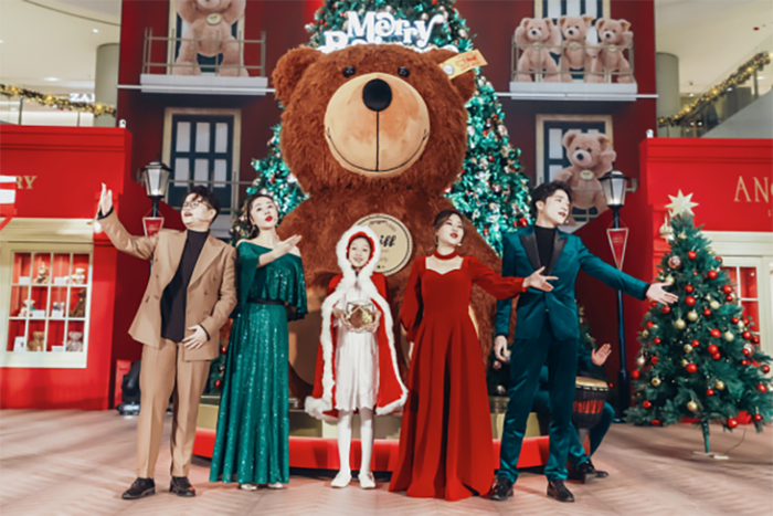 长沙IFS总经理颜昭朗先生、长沙IFS推广及市场总监曾雅菁女士、Steiff市场总监马莉女士,ANGELINA长沙执行董事顾欣诗先生及演职人员共同开启Merry Bearmas华中首展