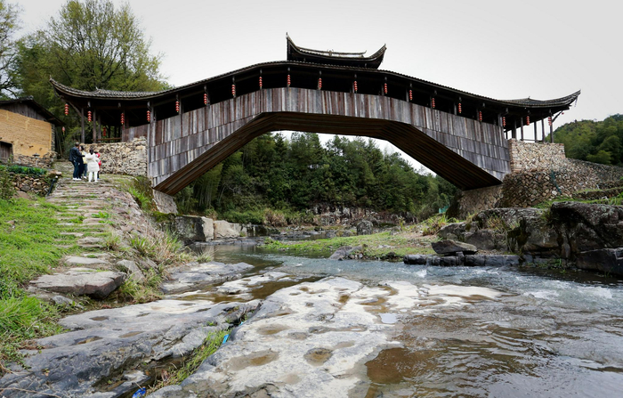 在浙南闽北山区,廊桥的种类繁多,有石拱廊桥、木平梁廊桥、伸臂叠梁式廊桥、八字撑木平梁廊桥、木拱廊桥等样式。在所有的廊桥当中,木拱廊桥的营造技艺最为复杂,既是世界桥梁史上的绝品,也是我国古桥梁研究的活化石。木拱廊桥营造技艺,被联合国教科文组织列入《急需保护的非物质文化遗产名录》。