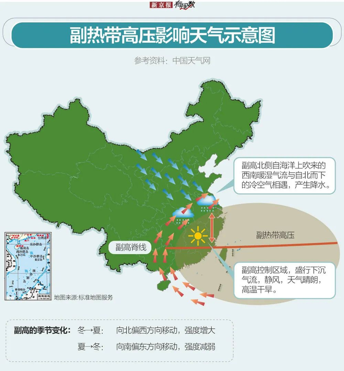 其实,北方今年这么多雨的直接原因,和一个气象名词有分不开的关系——副热带高压。简单解释下,副热带高压主要指的是分布于南北纬30°左右的,一股位置不确定的温暖气团,它与影响气候的热带气旋有关。