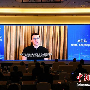 知名博主、歪果仁研究协会会长高佑思在论坛上发表视频演讲。中新网记者 李骏 摄