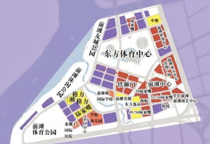 其实比较下来,后滩的地理位置更佳。地处中环内、浦江东岸一线地带,北邻开发几近饱和的陆家嘴区域,南面就是上海中环圈上的新晋“优等生”前滩。