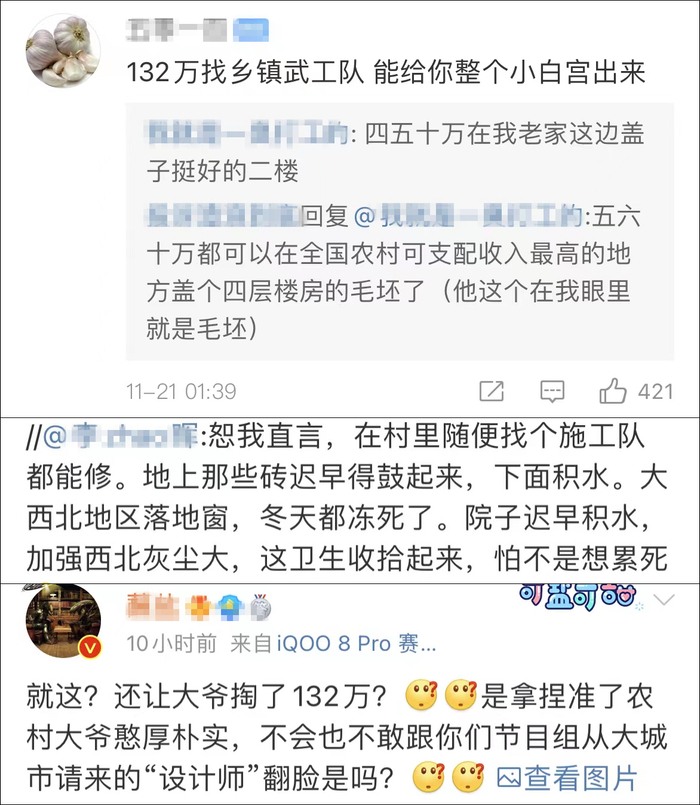 很多网友不能理解:“一百多万别说小洋楼了,在农村说不定都能造出个富丽堂皇的小宫殿了”