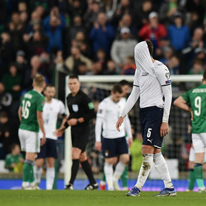 11月15日,意大利队在2022世预赛欧洲区C组第10轮比赛中,被北爱尔兰队逼平,出线形势严峻。 视觉中国供图