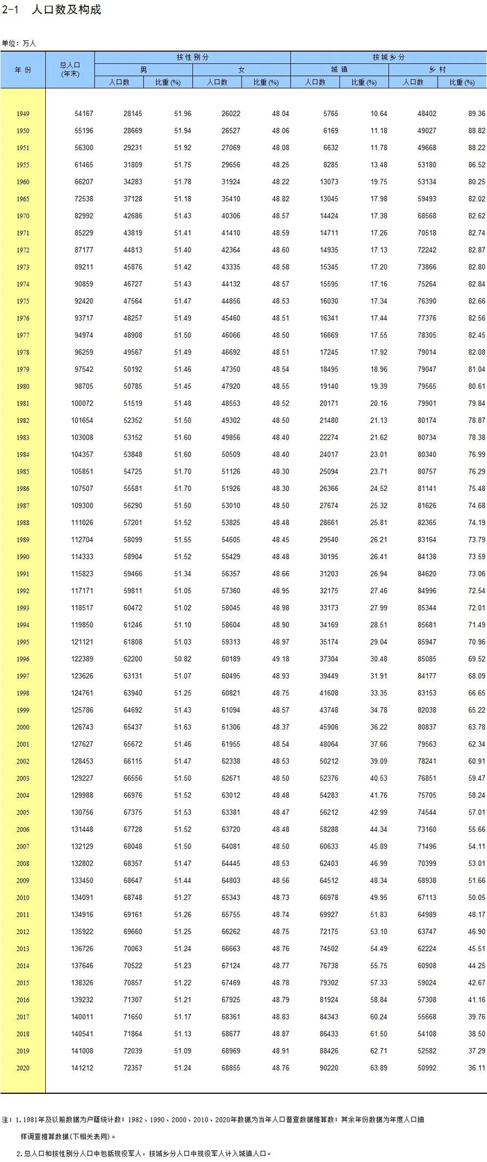 辽宁2020年镇人口总数为:5153499人,其中男性2566297人,女性2587202人,性别比(女=100)为99.19