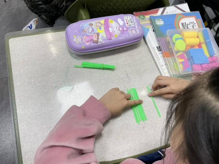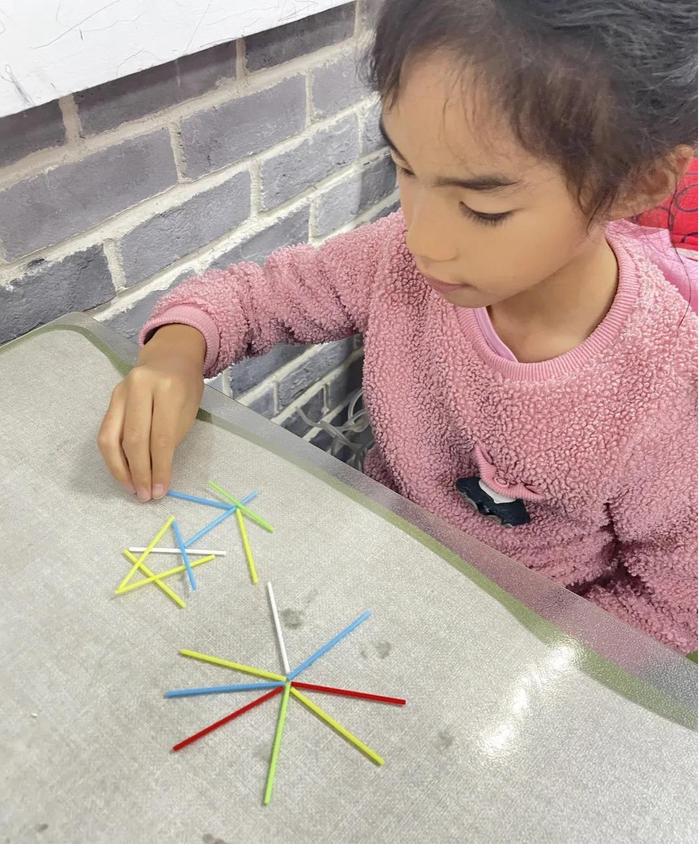 中华路小学学生们在课堂上高兴地拿出自己的学具,认真地摆了起来,他们有的用小棒摆出了汉字,有的摆出了烟花的图案,还有摆出算式和数字的。王文莹表示“我看着学生们摆出的图形不由得感叹他们丰富的想象力。”