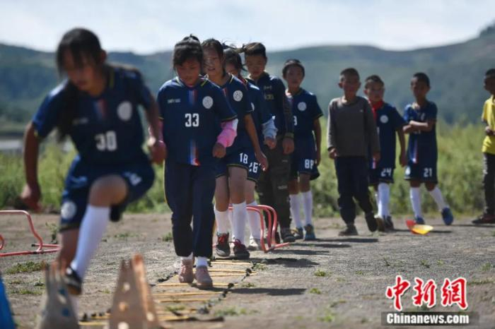 2021年9月,四川省凉山彝族自治州昭觉县瓦吾小学的彝族孩子们迎来了新学期开学后的第一节足球课。瓦吾小学因其特殊的地理位置,被称为“云端小学”。目前,该校255名学生中踢足球的学生超过了80名,足球为孩子们架起了一座通向山外世界的桥梁。中新社记者 张浪 摄
