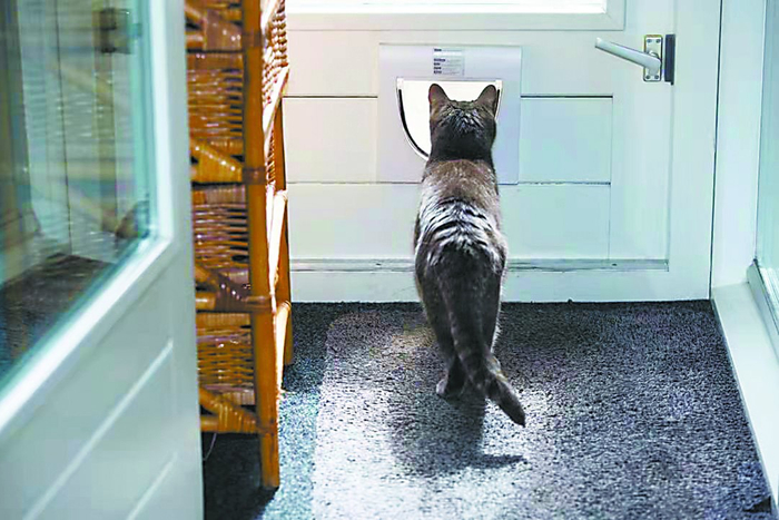 在比利时,不少房主会在家门上打出一个宠物门(如图②),让猫可以自由出入玩耍,尽享大自然的多彩。晚上,它们伴着夕阳归家,夜里伴在主人身边入眠,早晨再出门探险,如此往复。比利时的猫主人也很淡定,一个朋友告诉记者:“我家的猫常常夜不归宿,就算回家,午夜才回来也很正常。只有连续超过一周没回来,才会怀疑猫是否迷路或者困在陌生人家的花园或阳台了。”