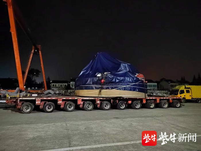 在几百公里外的江阴靖江长江隧道施工现场,继11月16日江阴靖江长江隧道“匠心一号”盾构机核心部件——主驱动着陆后, 11月18日,主驱动从扬子长博造船厂码头顺利运输抵达施工现场。
