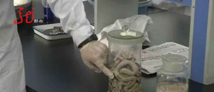 你看那虫体都是一样的(粗细),你把它剖开,这里面没有任何结构,这个是没问题的。