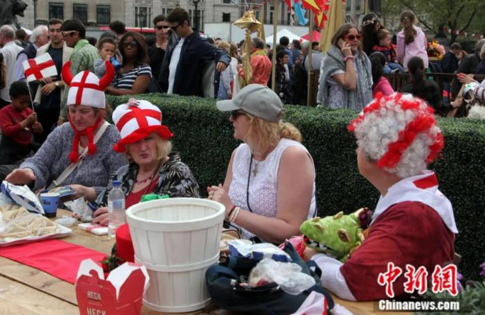 2015年4月,大批伦敦市民聚集在伦敦市中心的特拉法加广场,庆祝英格兰国庆日“圣乔治节”。中新社记者 周兆军 摄