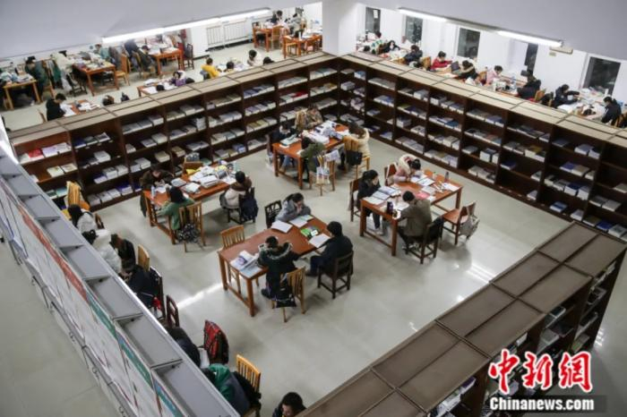 2020年12月,贵州贵阳,学生们在贵州民族大学逸夫图书馆内自习。中新社记者 瞿宏伦 摄
