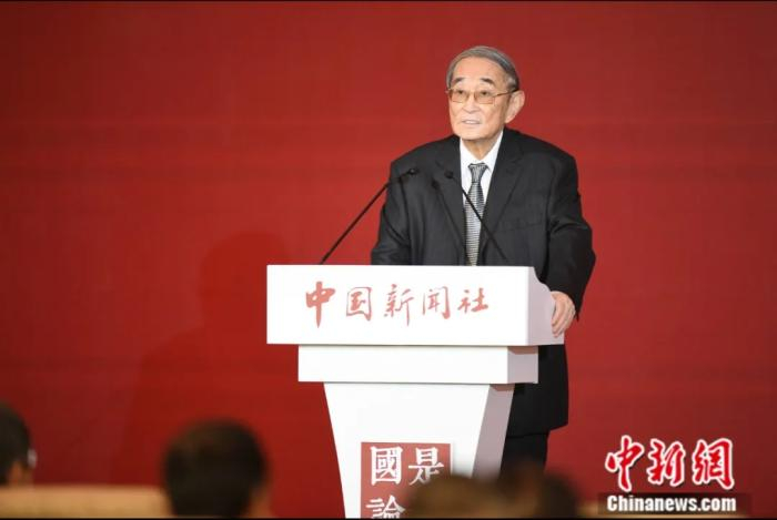 2017年12月,在中新社主办的国是论坛年会上,著名经济学家厉以宁先生发表主题演讲。中新社国是论坛 供图