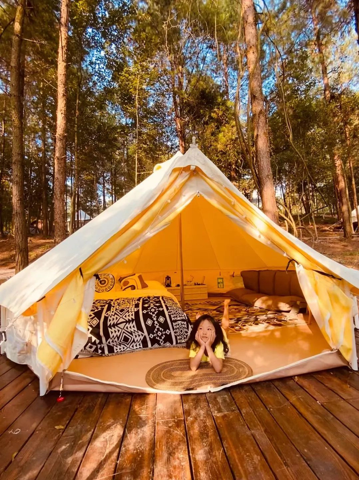 帐篷前拥有超大露台,独享绝佳视野,可揽星河入怀,抱拥广袤山野而眠。身处山林之中,帐篷酒店仍以五星级标准配备室内空间,从灯光、家具到布草软装,每一丝不苟的陈列,都致力于营造精致怡人的度假氛围。