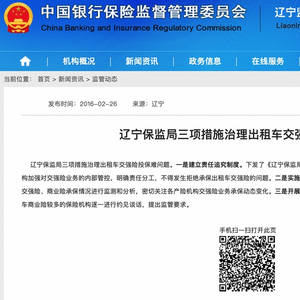 早在2016年2月,辽宁保监局就在其官网发布消息称,将采取三项措施治理出租车“交强险”投保难问题。比如建立责任追究制度,要求各机构加强对“交强险”业务的内部管控,明确责任分工,不得发生拒绝承保出租车“交强险”的问题。此外,实施数据监测和开展约谈等措施,来破解这一难题。