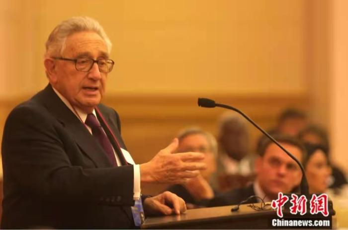 2002年11月,在北京人民大会堂,美国前国务卿基辛格博士批驳“中国威胁论”。中新社记者 史利 摄