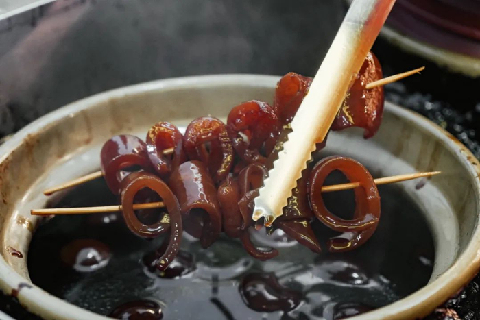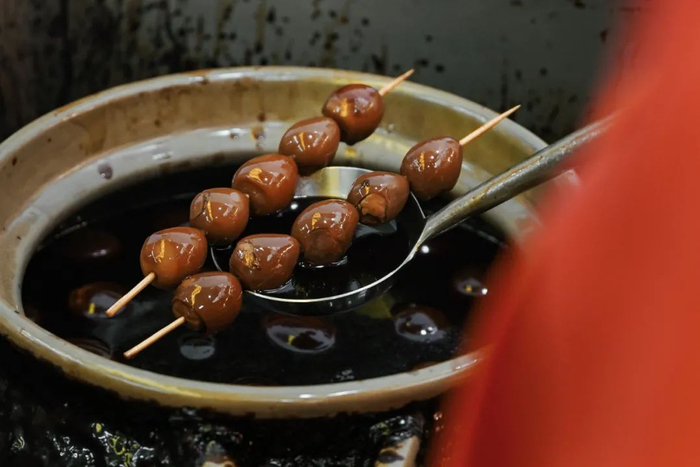 提到姜醋的衍生小吃,就离不开姜醋猪皮跟姜醋鹌鹑蛋了。因为吸收了甜醋的精华,猪皮跟鹌鹑蛋吃着香香甜甜,滋味十足。