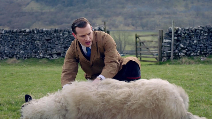 《万物生灵》没有狗血复杂的人物关系,全剧温和得像加过奶的英式淡茶,一切剧情都是围绕着农家牛羊马匹的生死健康。1938年第二次世界大战一触即发,时任英国首相张伯伦与德国签署了《慕尼黑协定》,回国后他向人民声称自己“带来了我们这个时代的和平”,此举却加快了世界大战到来的脚步。《万物生灵》第二季的开场是这样巨大的历史背景里的一场宠物猫手术,完事后年轻的兽医詹姆斯告别家乡,回到自己工作的地方约克郡的达罗比镇。