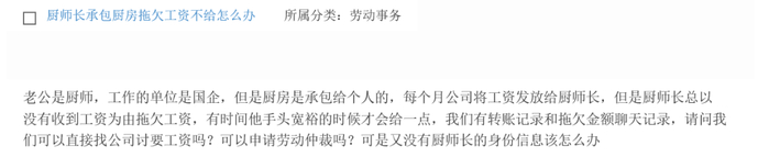 若你老公属于厨师长雇佣的劳务人员,则你们可以根据《民法典》合同编主张自己的权益。建议你们结合手头的转账记录和拖欠金额聊天记录等证据通过诉讼,向厨师长主张支付报酬。此外,你们可以委托律师协助收集厨师长的身份信息。
