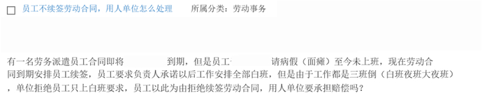 有一名劳务派遣员工的合同即将到期,但是该员工于两个月前请了病假(面瘫),至今未来上班。如今劳动合同到期了,用人单位要安排员工续签,员工要求负责人承诺以后工作安排全部白班。但由于工作都是三班倒(白班夜班大夜班),用人单位拒绝了员工只上白班的要求,员工以此为由拒绝续签劳动合同,那么用人单位要承担相关的赔偿吗?