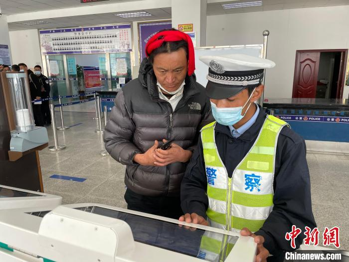 服务大厅的另一边,自助办理机前,辅警扎加正引导帮助民众办理业务,他说:“大多数业务都能在机器上办理,通过自助服务机平均每天能引导100多人次办理业务。”