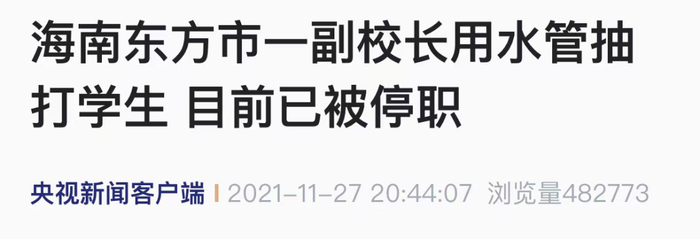 另据中国青年报报道:副校长水管抽打体罚学生,停职!警方介入!
