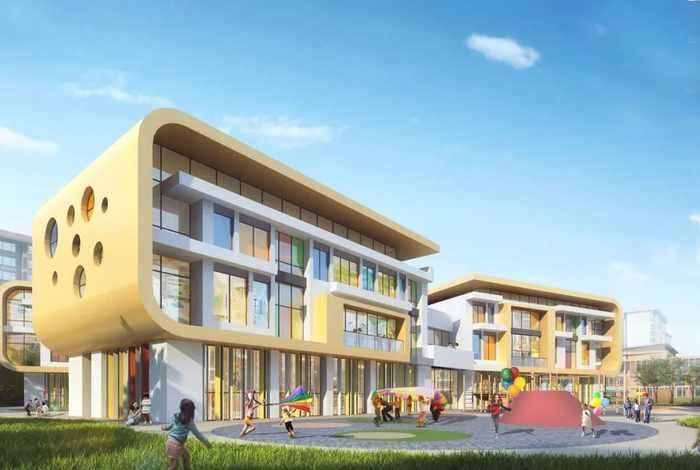 雄安容和佳泰幼儿园位于容东片区新荷社区红莲街202号,占地面积7104㎡,总建筑面积5655.57㎡,由清华大学建筑设计研究院有限公司设计,建有15个普通教室、5个功能教室,标准化厨房等。幼儿园共设置15个教学班,每班25人,可容纳375个幼儿。