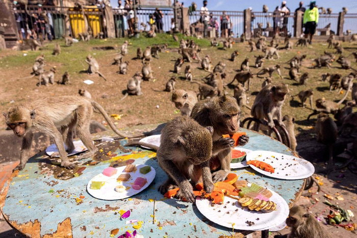 泰国华富里府举办第33届“猴子自助餐节”