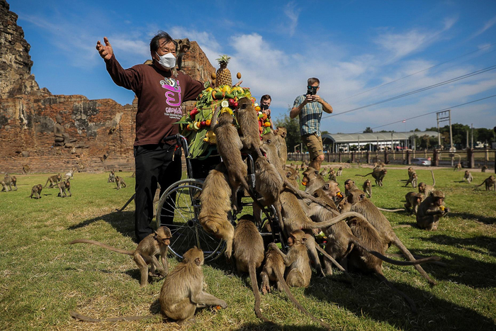 原标题:泰国华富里府举办第33届“猴子自助餐节”