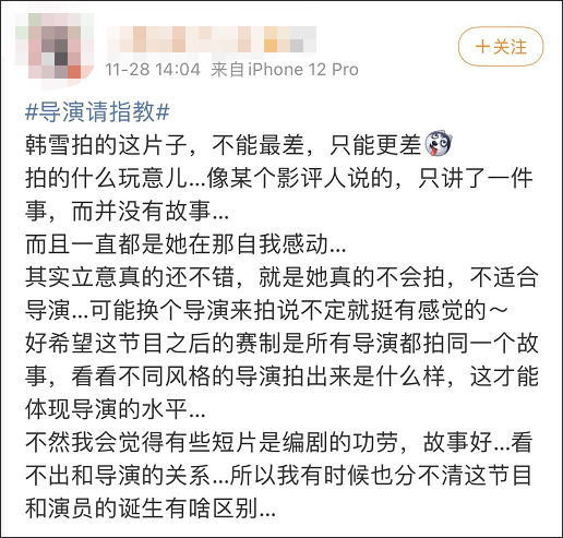 原标题:《导演请指教》韩雪短片被吐槽:没有描述底层的能力,只感动了自己