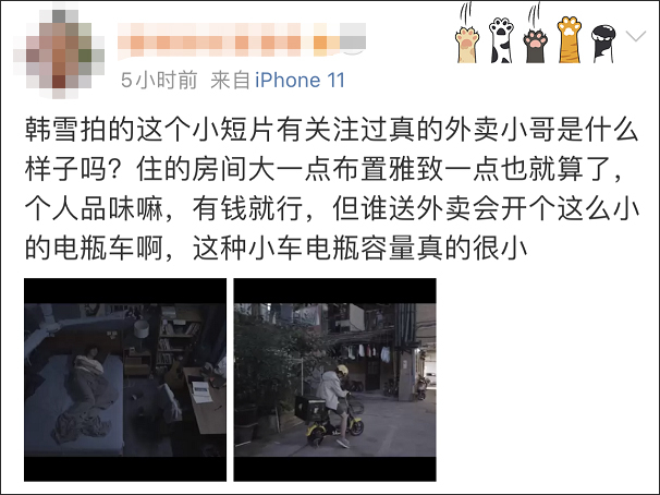 还有细心的网友发现,短片中,外卖小哥租住的地方位于上海市中心,一居室在这里的月租超过8000,“导演怕不是想接地气,没接上?”