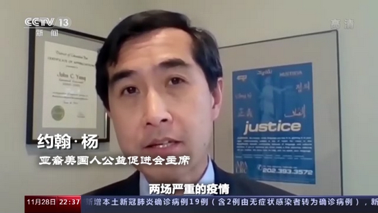 亚裔美国人公益促进会主席 约翰·杨:美国的亚裔其实正在经历两场严重的疫情,其一就是新冠疫情,其二就是另外一种病毒,美国社会里致命的歧视顽疾。