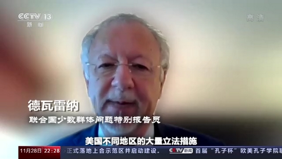 联合国少数群体问题特别报告员 德瓦雷纳:数百万美国人尤其是少数群体,正面临日益加剧的不平等,日益严重的歧视,以及仇恨言论和仇恨犯罪的急剧增加。