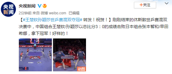 原标题:王楚钦孙颖莎世乒赛混双夺冠 转发!祝贺!