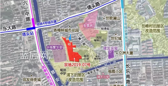 蓝色箭头处为幼儿园位置