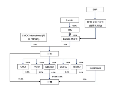 2017 年的时候,洛阳钼业曾经寻求合作伙伴,想收购加拿大伦丁矿业在 TFM 的股份,这时候渤海华美介入,为这次交易募集了 11.4 亿美元,并且和洛阳钼业签署了协议,允许洛阳钼业收购渤海华美在 TFM 的股份。