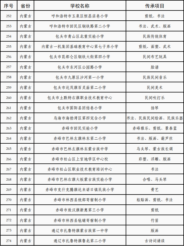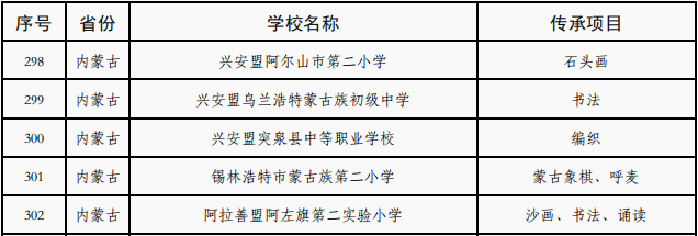 近日,教育部公布第三批全国中小学中华优秀传统文化传承学校名单,认定1885所学校为第三批全国中小学中华优秀传统文化传承学校,其中内蒙古54所学校入选(见下图)。截至目前,内蒙古共有98所学校获此荣誉。