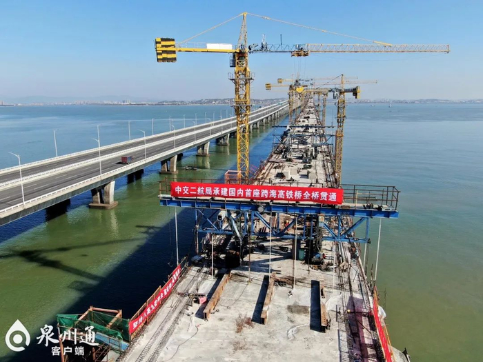 原标题:福厦客专泉州湾跨海大桥全桥贯通,系国内首座跨海高速铁路桥