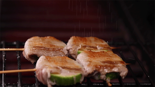 西葫芦串是日式烤串界的百搭能手,脆爽多汁的口感是它的独特之处。再搭配上焦香的黑豚,这组合闻着迷人,吃着忘情。