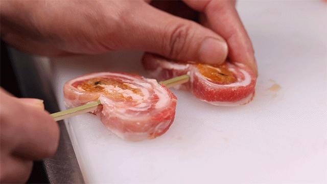 「黑豚泡菜卷」这道连主厨都推荐的特色烤串,从一开业就很受欢迎,也是每次来了都必点的一串烤物。