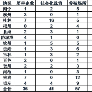 以目前自治区备案登记的生猪屠宰企业197家,家禽屠宰企业16家,牛羊屠宰企业5家,生猪养殖场数量4000多家;生猪备案车辆终审通过的8775台,非桂备案车辆1820台的存量,如果以洗消合格证明5天有效为一个周期,每天至少423台车在有效运行中,而实际上按“牧运通”一个多月的平均值看每天有516台在运行,因此建设符合要求的洗消中心网点数量缺口依然很大,初步预计广西需建成284个以上的洗消中心才能基本满足全区的饱和运行,目前的饱和率仅仅46%。所幸的是目前全区各畜禽养殖、运输、屠宰加工等各个环节的从业者均意识到动物疫病防控、加强消毒灭源的重要性,表示大力支持建设洗消中心。自治区已进一步部署安排加强洗消中心建设验收工作,以期快速推进广西洗消中心网络的全面建设。