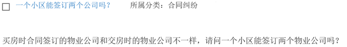 买房时合同签订的物业公司和交房时的物业公司不一样,请问一个小区能签订两个物业公司吗?
