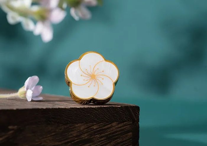 于是,我们参照宋代《梅花喜神谱》,用淡水贝壳,加描金点缀,制作了这样一款香薰匣子。希冀将一缕梅香、一段快意,一并藏进车间。