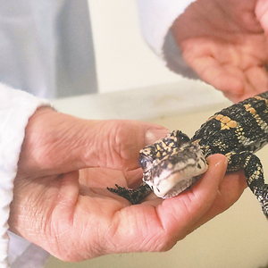 ◆11月24日,安徽扬子鳄国家级自然保护区内,工作人员正在检查幼年鳄生长情况。