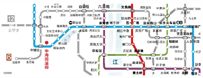 中海阅溪府公寓约500米直达2/6号线双地铁换乘站中塘站(在建)。地铁2号线起于高铁西站,联通湘江新区综合交通枢纽、五一广场、长沙火车站、高铁南站,目前延长线已全面动工,预计2025年开通;地铁6号线西起梅溪湖片区,东至黄花国际机场,预计今年12月30日试运行,2022年正式对公众开通运营(信息来源:家在河西、长沙地铁、长沙晚报)。项目坐享出行便利的同时,汇聚庞大人流,为公寓提供大量的商旅出差、异地办公等高消费租客来源。