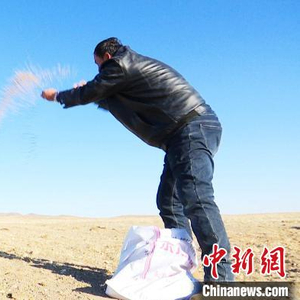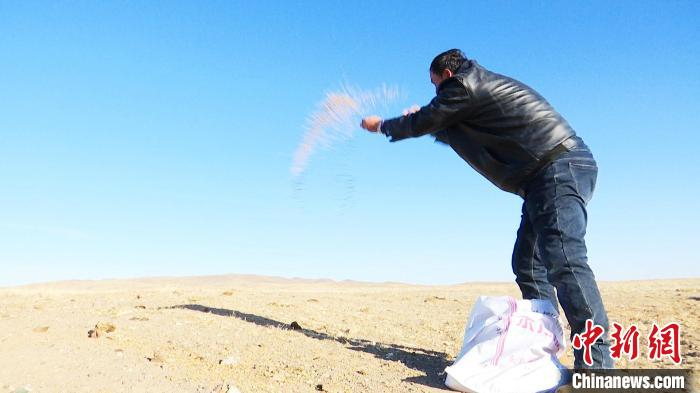 冬日的乌拉特草原寒风凛冽,张永利麻利地给水槽填满水,然后把饲料随意地撒到草场上,显然这不是自家牲畜的食物。