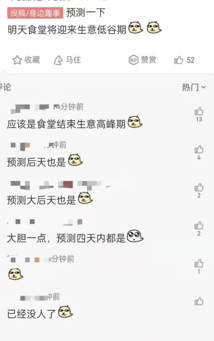 “整整七天,可以说是我们对校外美食期待值的指数增长的七天,一解封就看到朋友圈里同学们开始约着吃美食:奶茶、烤冷面、炸串、花甲粉丝……甚至有同学在朋友圈打出了‘海底捞!!!’,‘堕落街’已经不能满足我们了。寝室的楼道里、校园的路上,瞬间变得熙熙攘攘。”一位欢呼的同学说。