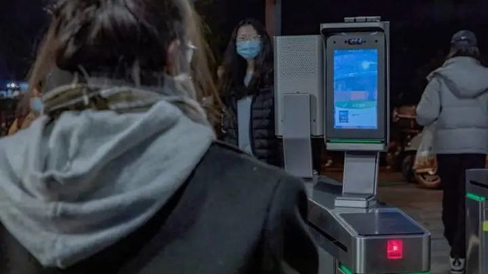 在东一门,学生排队刷脸、刷浙大蓝码后,就可以通行。